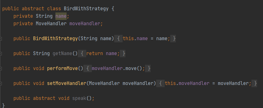 해당 인터페이스를 구현한 객체(전략) 중 어떤 객체를 사용할지 setter 를 만들어둔다.